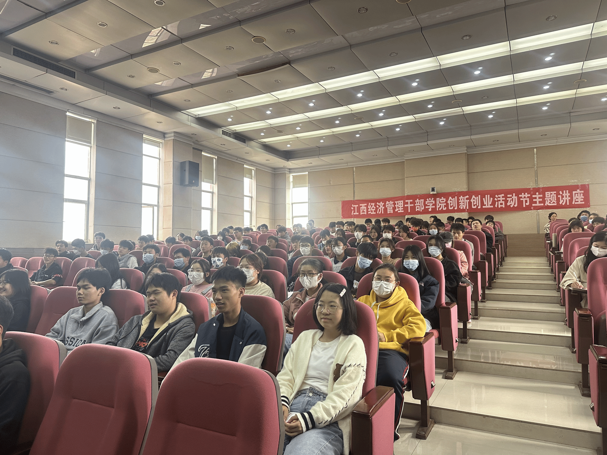 为进一步提升学校整体双创氛围,培养提高大学生的创新精神、创业意识、创新创业能力, 11月21日,创业教育学院邀请了江西赣商联合总会副会长,江西赣萍商业发展有限公司总经理,2003级校友胡波在二教视频会议中心作“时势造英雄”大学生双创主题讲座。创业教育学院全体教职工、各学院双创联络员、部分双创课任老师及各学院学生等130余人听取了讲座。